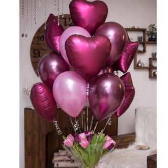 - 6 фольгированных сердец и звёзд 45см