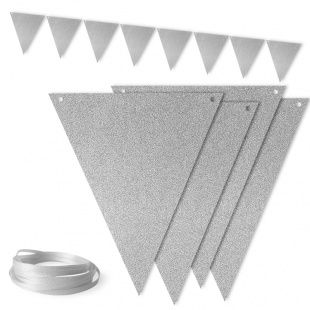 В упаковке 12 флажков, размером19,5 х16 см. Гирлянду нужно самостоятельно собрать на ленту (лента в комплекте), ее длина 300 см. Рисунок нанесен с одной стороны.