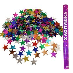 Пневмохлопушка размером 60см. В качестве наполнения используются фольгированные звезды. Дальность выстрела 5-8м.